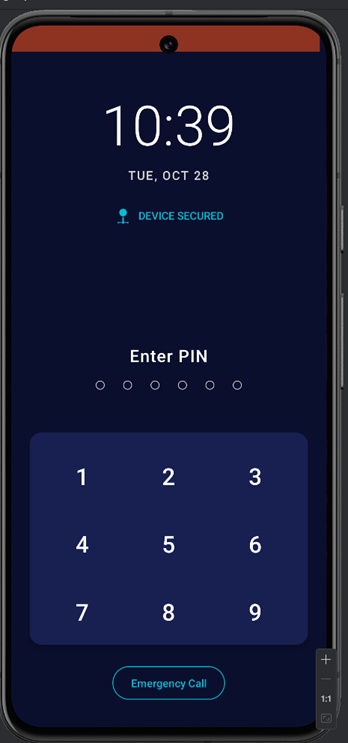 When kiosk mode is activated, the app launches YouAreSecureActivity, which locks the device and blocks normal PIN entry, even the correct PIN always returns “Wrong PIN.”