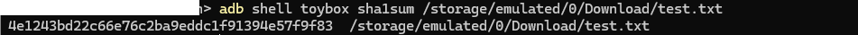 SHA-1 Hash Calculation: The method constructs a shell command using toybox sha1sum