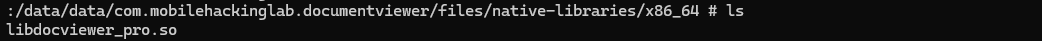 adb shell ls -la /data/data/com.mobilehackinglab.documentviewer/files/native-libraries/x86_64