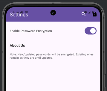 However, the app includes a feature to encrypt stored passwords, which can be enabled through the app’s settings.