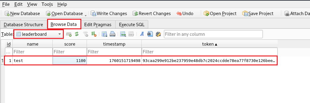 SQL: INSERT INTO leaderboard (name, score, timestamp, token) VALUES (?, ?, ?, ?)
