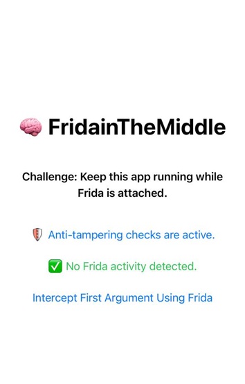 Welcome to FridaInTheMiddle, a Swift-based iOS application that’s extremely sensitive to uninvited interference. It comes equipped with active runtime tamper detection that watches for signs of Frida, whether through suspicious ports, injected dylibs, or unauthorized hooks.
