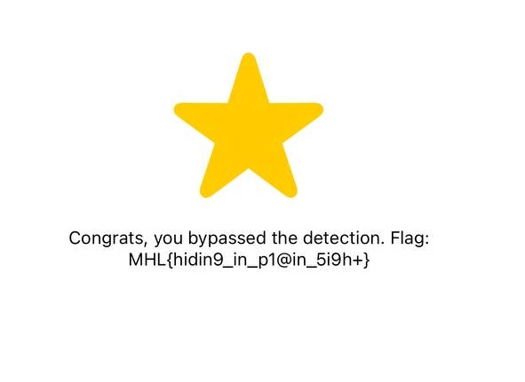 , the app assumes the device is not jailbroken and proceeds to retrieve the flag.