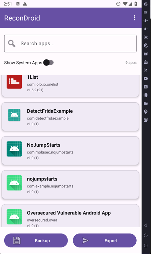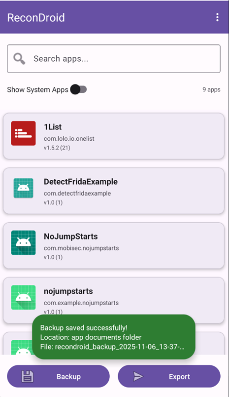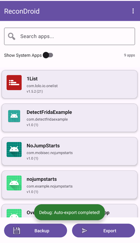 It features smart filtering, real-time search, and professional-grade backup and export functionality for security researchers. Its streamlined interface helps you understand your device’s attack surface while ensuring critical application intelligence is always accessible and shareable.