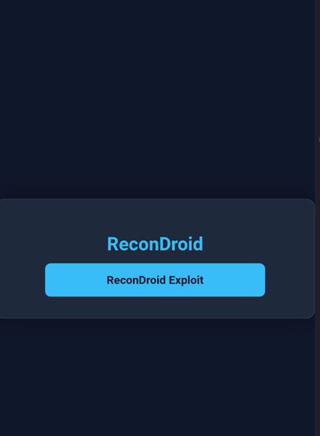 Your solution must work on Android devices running versions up to Android 15. Your exploit must work through web browsers where all the victim needs to do is open a webpage on the Android devices browser and must not require any additional permissions beyond what ReconDroid already requests, making the attack vector appear as a legitimate web interaction to unsuspecting users.