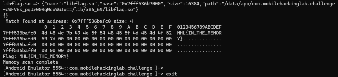[Android Emulator 5554::com.mobilehackinglab.challenge ]-> message: {'type': 'send', 'payload': '{"my_type" : "KEY"}'} data: b'your_secret_key_1234567890123456'