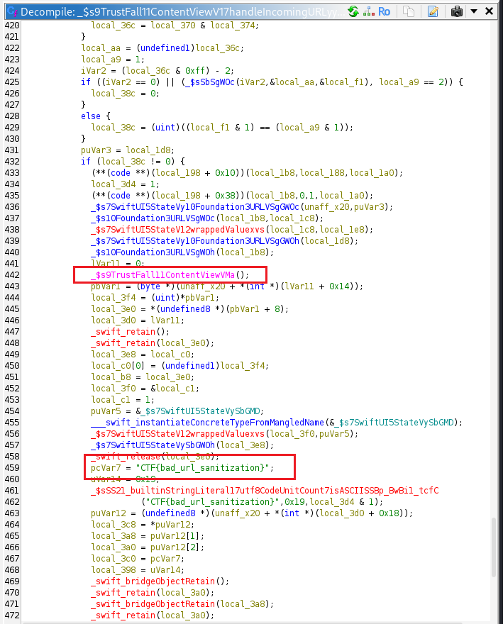 | 8 | If not trusted | Set a SwiftUI state to display "CTF{bad_url_sanitization}". |