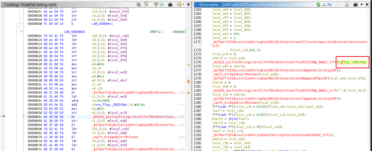If the domain matches "8ksec.io", the app updates its SwiftUI states as expected. Otherwise, it changes its internal state to display the flag, indicating that an unsafe or modified URL was detected.