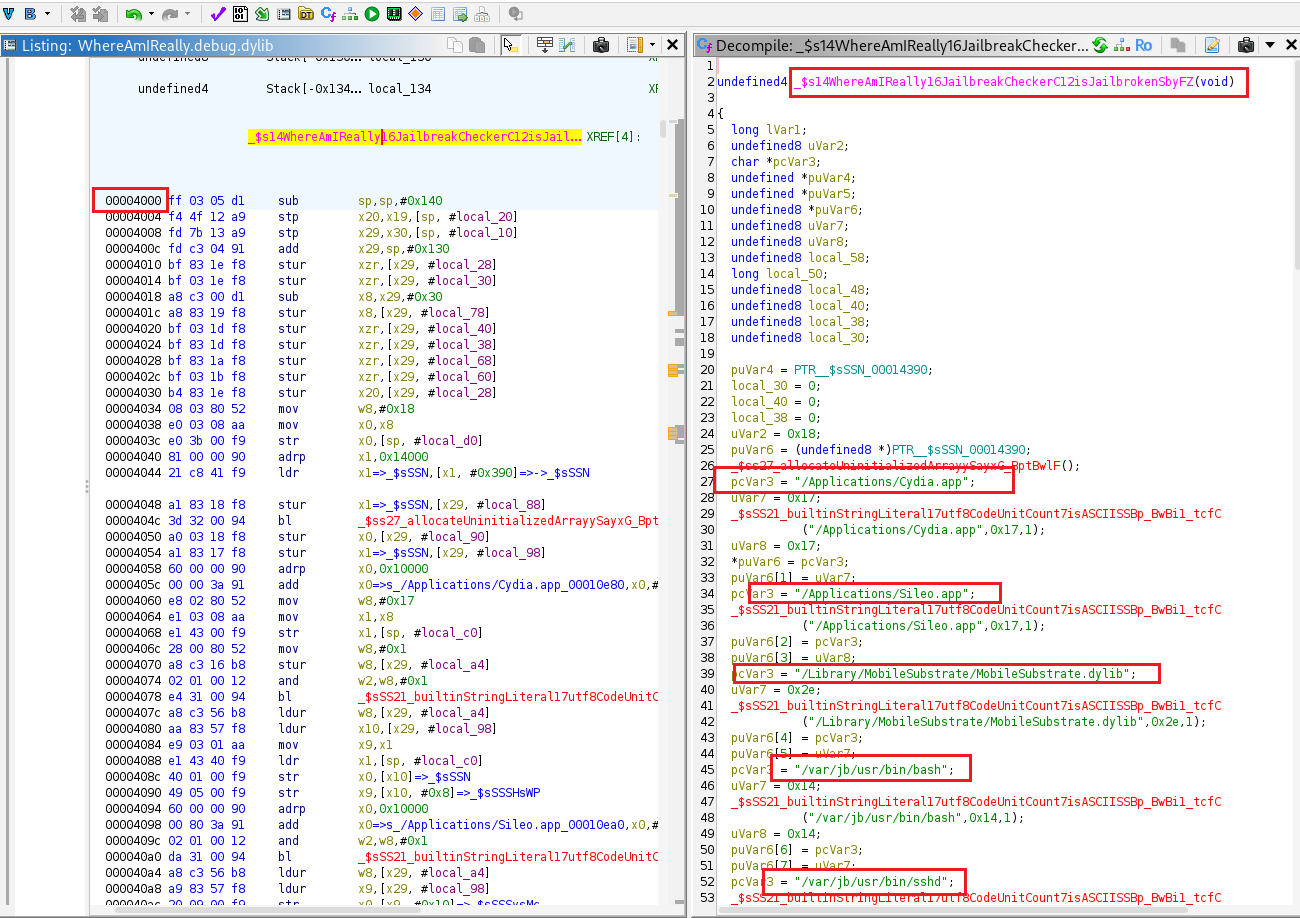 There is a function runs several jailbreak checks. to bypass detection we’ll hook that function and force it to return 0.